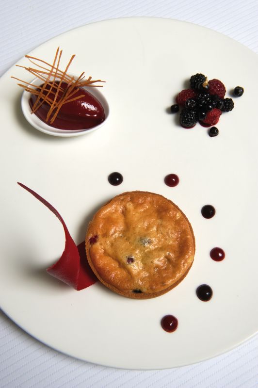 - Pâte sucrée : 150 g de beurre doux, 30 g de poudre d’amande, 270 g de farine, 90 g de sucre glace, 1 œuf, 20 g de fruits rouges