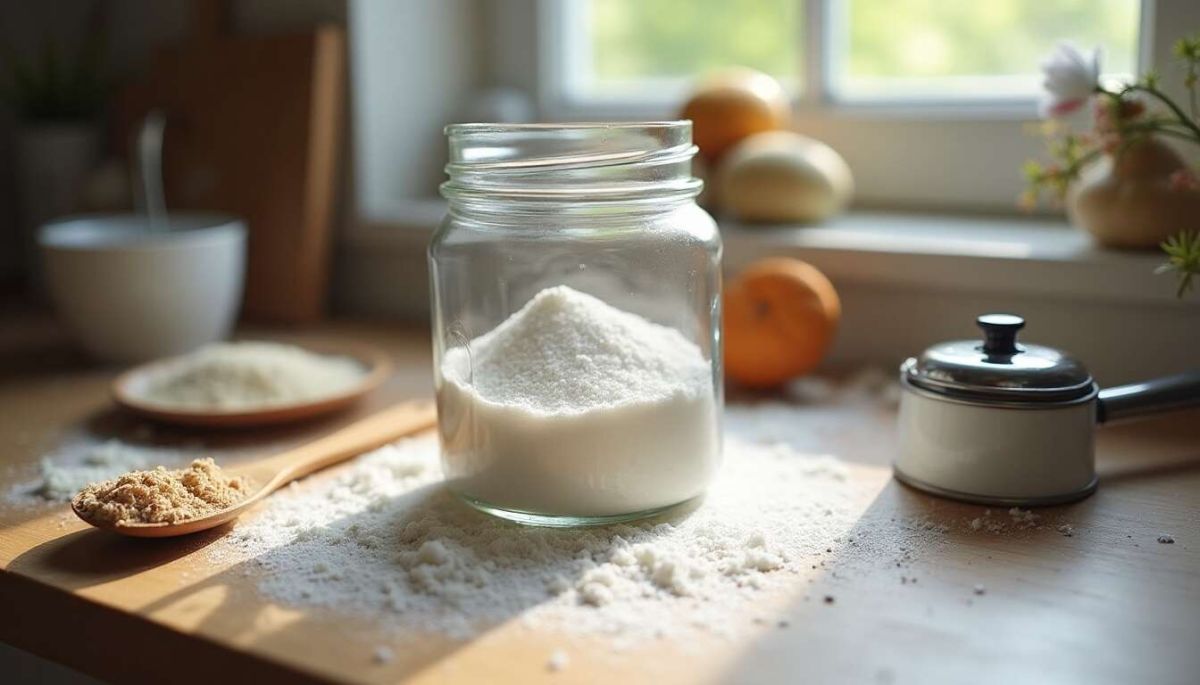 Assurez-vous de stocker votre sucre glace dans un endroit frais et sec. Un bocal en verre hermétique est parfait pour préserver la fraîcheur et éloigner l’humidité.