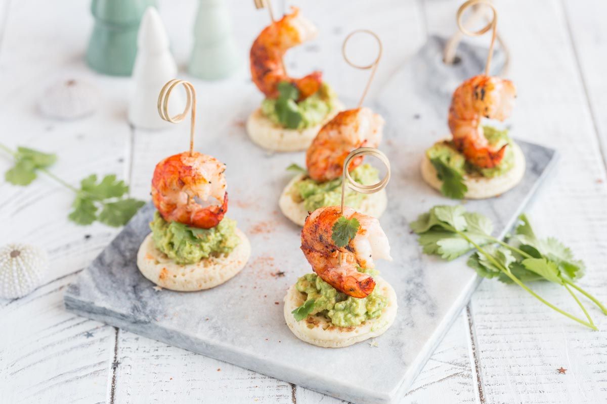 Blinis au Guacamole et Crevettes Grillées