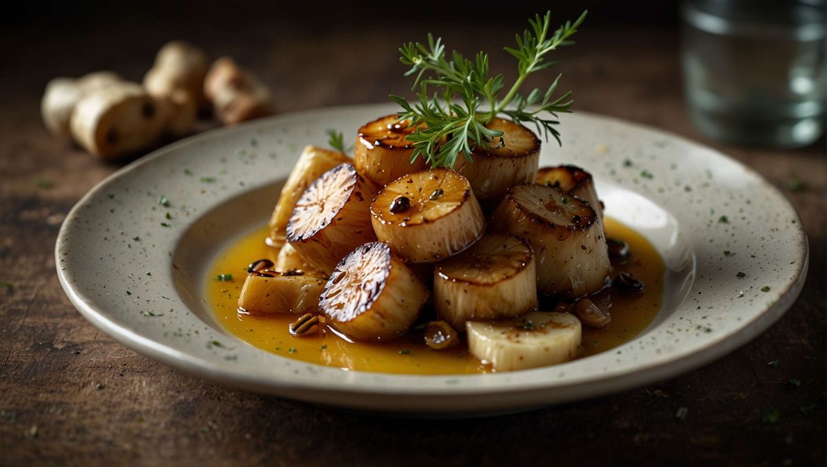 Le céleri-rave au miel allie tradition et touches modernes. Il peut être servi comme un accompagnement ou en plat principal pour un repas léger.