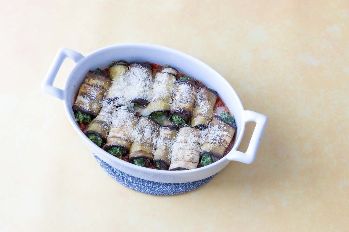 Une recette végétarienne de cannellonis d'aubergine farcis aux épinards et ricotta.