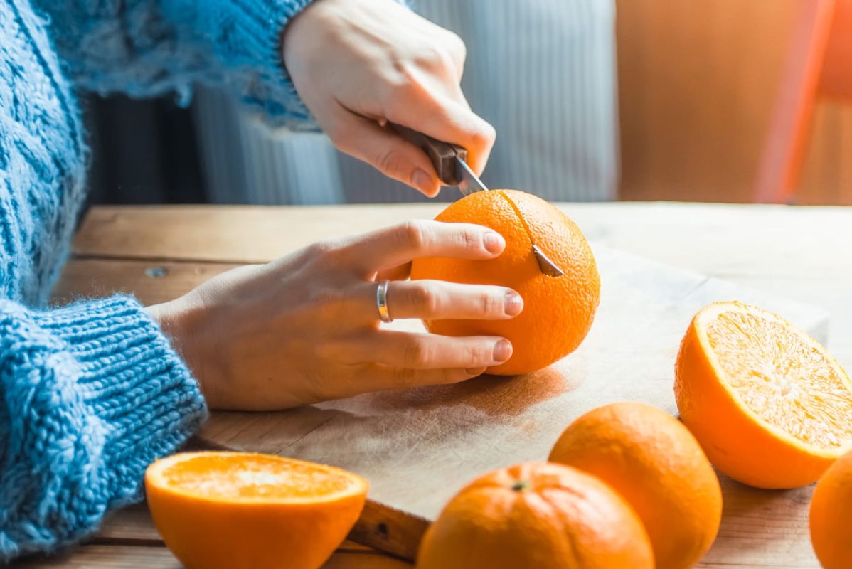 - Avec le couteau, faites glisser la lame le long de chaque membrane pour détacher les quartiers.