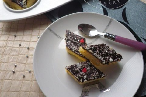 - Faites fondre le chocolat au bain-marie, puis nappez-en les pavés refroidis. Décorez-les avec des cacahuètes et un peu de noix de coco râpée. Laissez au frais durant deux heures avant de découper.
