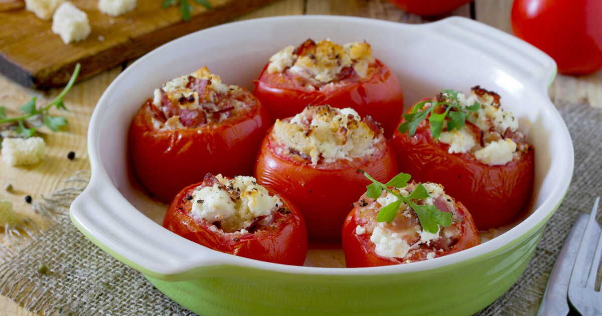 - Garnissez les tomates évidées avec ce mélange et saupoudrez de chapelure.