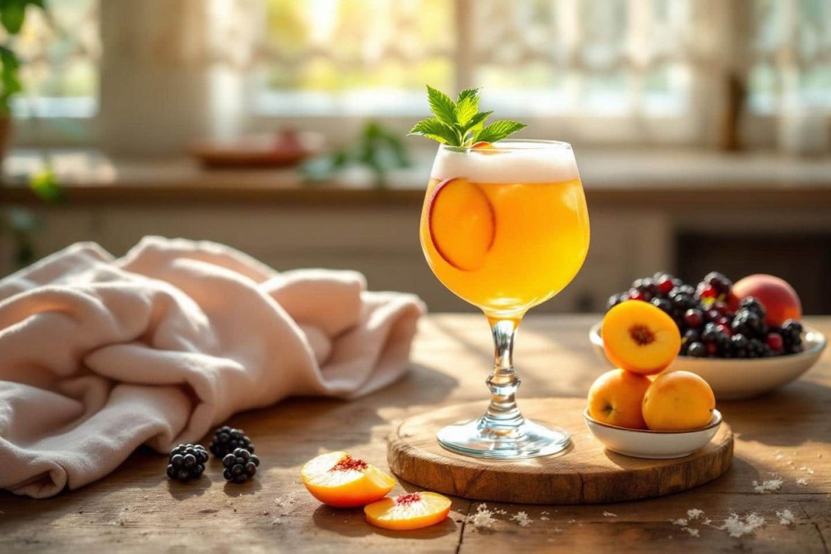 La combinaison du cassis et de la pêche jaune offre un contraste idéal. Le cassis, légèrement amer, rehausse la douceur juteuse de la pêche. En ajoutant menthe fraîche, rhum blanc et eau pétillante, ce cocktail devient vraiment captivant, parfait pour ceux en quête de nouvelles sensations gustatives.