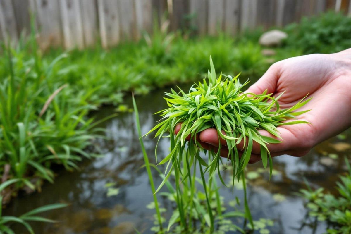 - Placement : déposez des couches de 1 à 3 cm le long des berges, entre galets et plantes émergentes, ou glissez des sachets en tissu (voile fin, moustiquaire) remplis de tontes dans les zones de circulation lente ou sous la sortie de pompe comme pré-filtre.