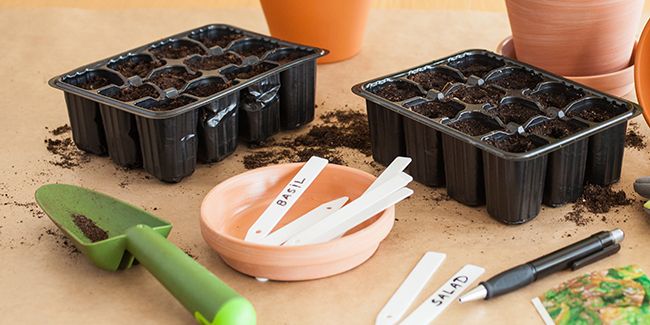 Commencez par retirer le fond du pot et le fendre sur toute sa hauteur pour créer une bande allongée. Découpez des morceaux de 1,5 à 2 cm de large et taillez une extrémité en pointe pour faciliter leur insertion dans le sol. Inscrivez les informations de chaque plante au marqueur. Ces étiquettes conviennent parfaitement aux semis en caissettes ou aux rangées potagères. Si vous avez des fourchettes en plastique, pensez à les réutiliser comme étiquettes ! N'oubliez pas de les retirer à la fin de la saison pour éviter qu'elles ne se retrouvent dans la nature.