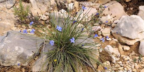 Aussi connue sous le nom d'Œillet-bleu-de-Montpellier ou Bragalou en occitan, l'Aphyllanthe de Montpellier (Aphyllanthes monspeliensis) est une plante vivace cespiteuse emblématique des paysages méditerranéens. Originaires de la région de Montpellier, ces magnifiques fleurs se rencontrent également du Maroc jusqu'au Portugal et dans les Alpes au sud, où elles prospèrent sur des terrains secs, souvent en garrigue et dans des forêts claires, jusqu'à 1 500 mètres d'altitude. Sa robustesse lui permet de supporter la sécheresse et de résister à des températures aussi basses que -10°C.