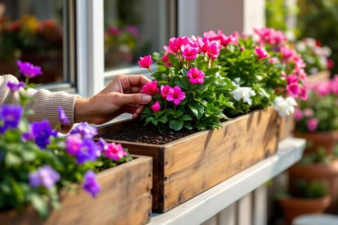 Utilisez des plantes retombantes pour adoucir les angles de votre jardinière. Optez pour un paillage naturel (copeaux de bois, écorces) pour maintenir l'humidité et donner une allure soignée à votre espace. Un arrosage régulier et un petit coup d'œil hebdomadaire suffisent pour un balcon plein de vie… sans trop d'efforts !