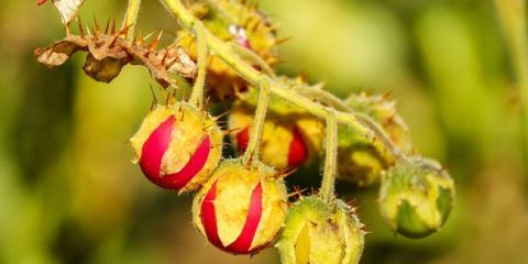 Après la floraison, les fruits globuleux émergent, protégés par un calice épineux. À maturité, ils deviennent d'un rouge éclatant et dégagent une saveur sucrée, mélange subtil de tomate, litchi, et cerise. En plus de ses fruits délicieux, la morelle de Balbis offre des avantages écologiques en empêchant les nématodes de la pomme de terre de s'installer. Son aspect piquant constitue également une barrière naturelle contre certains nuisibles.