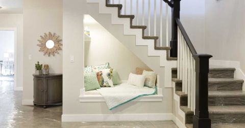 Transformez l'espace sous l'escalier en une bibliothèque accueillante. Choisissez des étagères ouvertes pour un accès facile à vos livres préférés, ou optez pour des fermées pour un look plus ordonné. Ajoutez quelques éléments de décoration pour personnaliser l'espace.