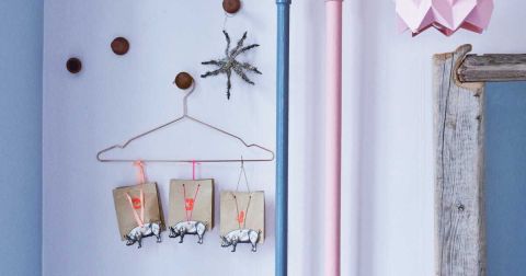 - Matériel : Rassemblez des cintres, des petits sachets ou boîtes, et des décorations festives.