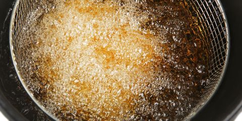 Saupoudrez le fond de votre friteuse avec de la farine et mélangez-la avec l'huile à l'aide d'une spatule en bois jusqu'à obtenir une pâte. Dégagez ensuite les résidus restants avec du papier absorbant.